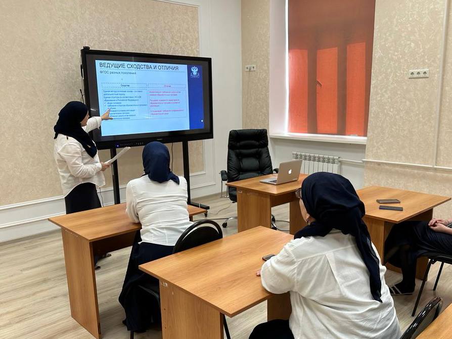 В ходе семинара методист Центра дистанционного обучения Кадиманамаева Аза Адамовна продемонстрировала разницу между разделами ФОП и ООП, рассказала про преподавание английского, русского языка и литературы в условиях обновленного ФОП, а также о формировании межпредметных связей на уроках английского, русского языка и литературы.