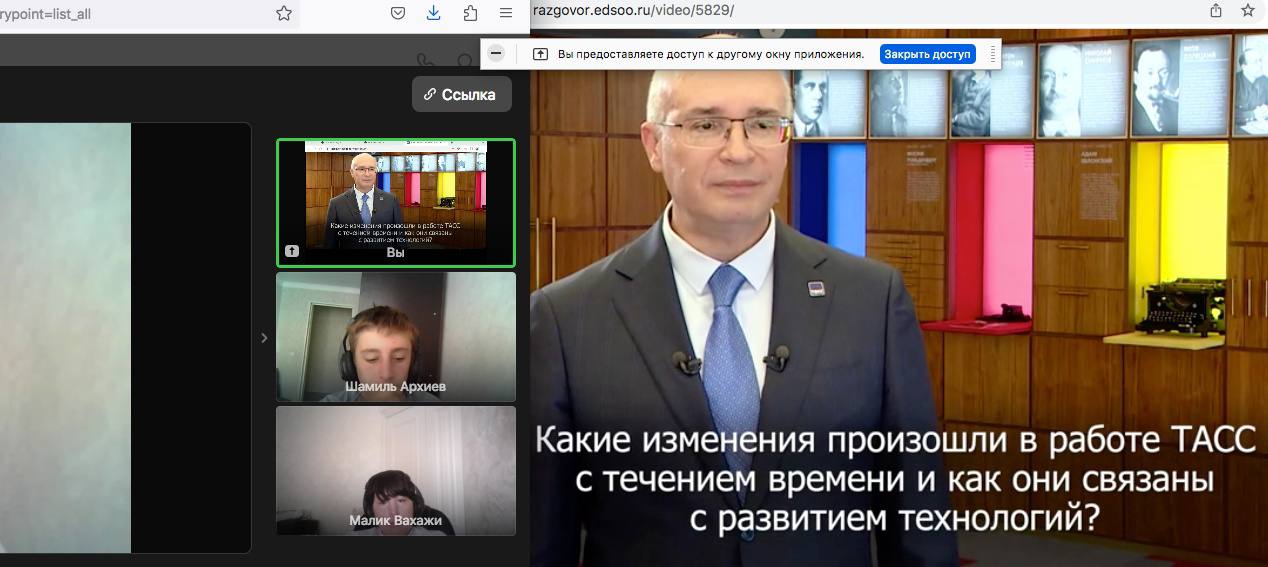 Целью занятия являлось ознакомление обучающихся с историей и функциями Информационного агентства России ТАСС.