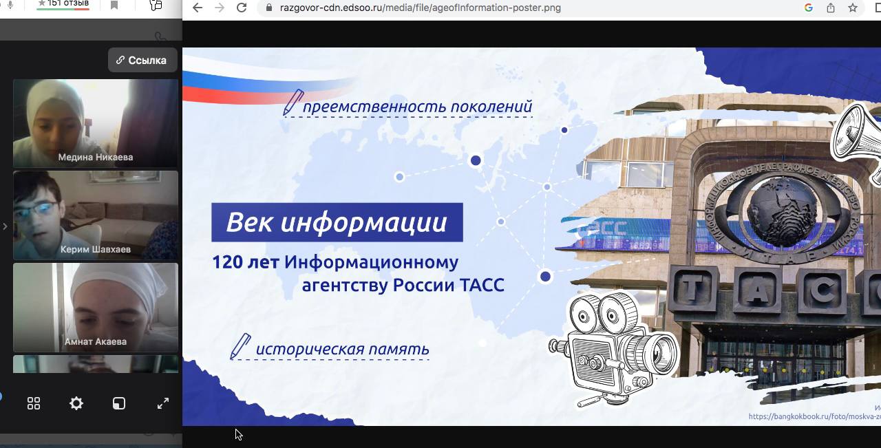 В ходе занятия педагоги ознакомили обучающихся с историей основания ТАСС и его значением в информационном пространстве на протяжении своего существования.