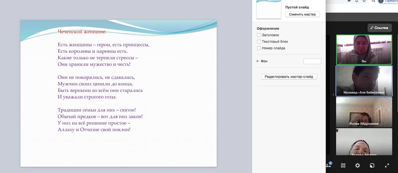 С учащимися Центра дистанционного обучения провели кураторские часы, посвященные Дню чеченской женщины