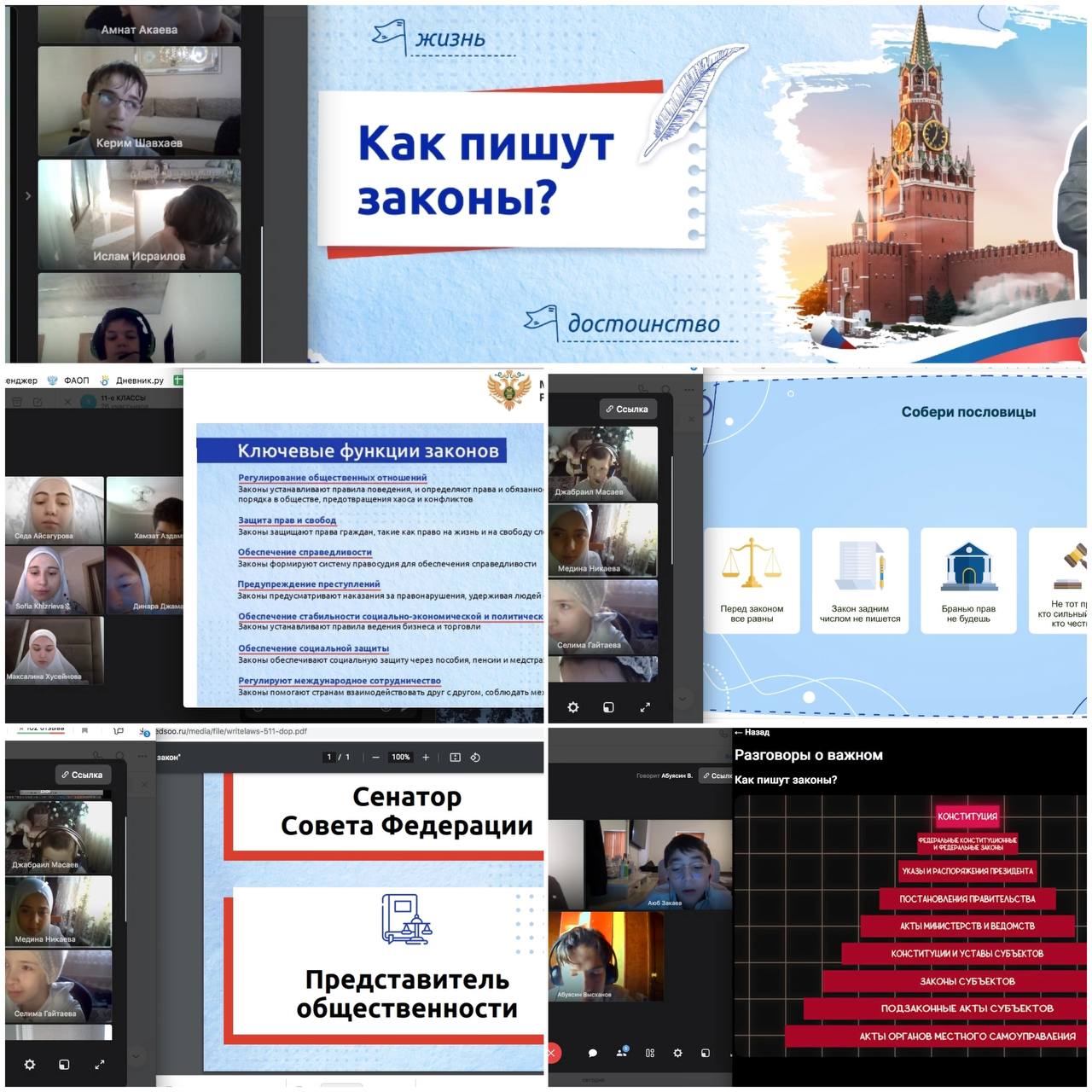 Во время занятия педагоги рассказали ученикам о процессе правотворческой деятельности, а также о роли законов в регулировании общественных отношений и их значении для обеспечения порядка и справедливости.