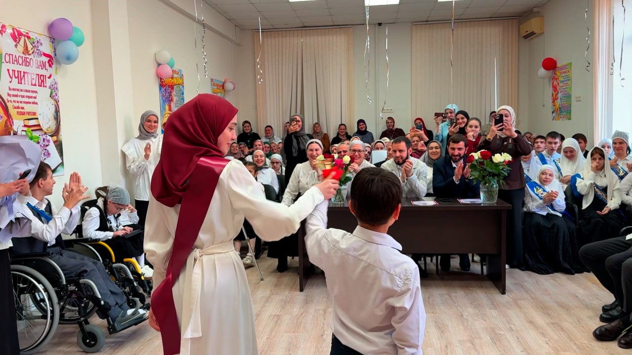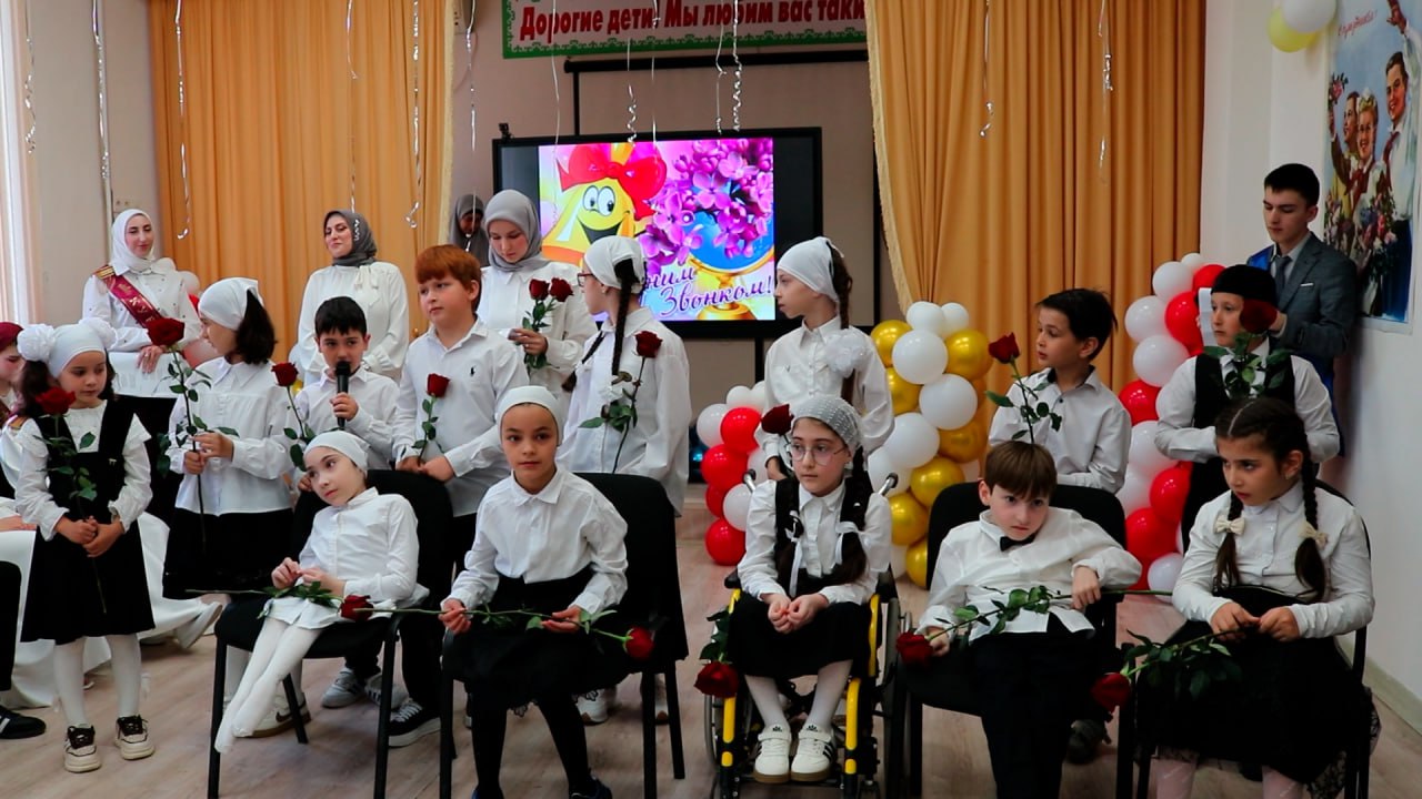 Почетное право дать последний звонок было предоставлено выпускнице одиннадцатого класса Седе Айсагуровой и первокласснику Ахмеду Идрисову.
