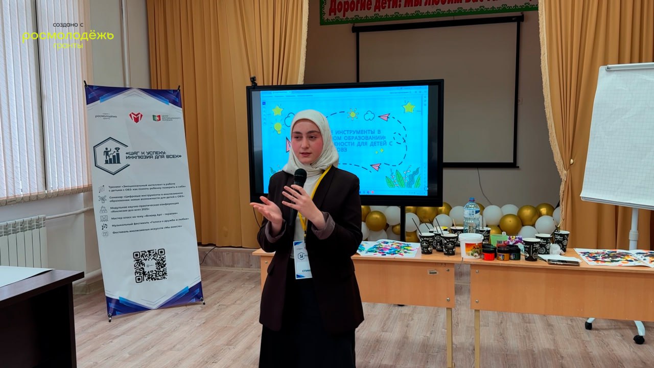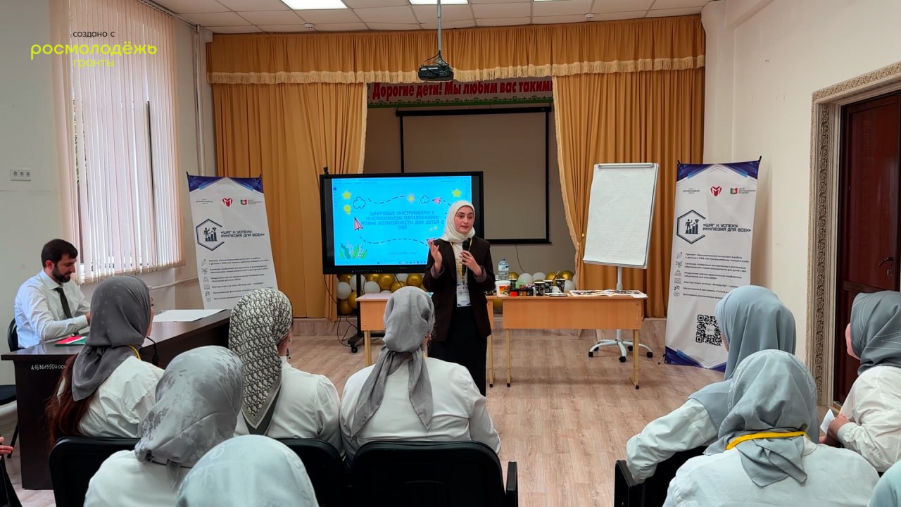 Спикером семинара выступила психолог Координационного центра Чеченского государственного педагогического университета Хеда Джамурзаева, которая поделилась современными методиками использования цифровых технологий для повышения эффективности обучения и социализации детей с особыми образовательными потребностями.